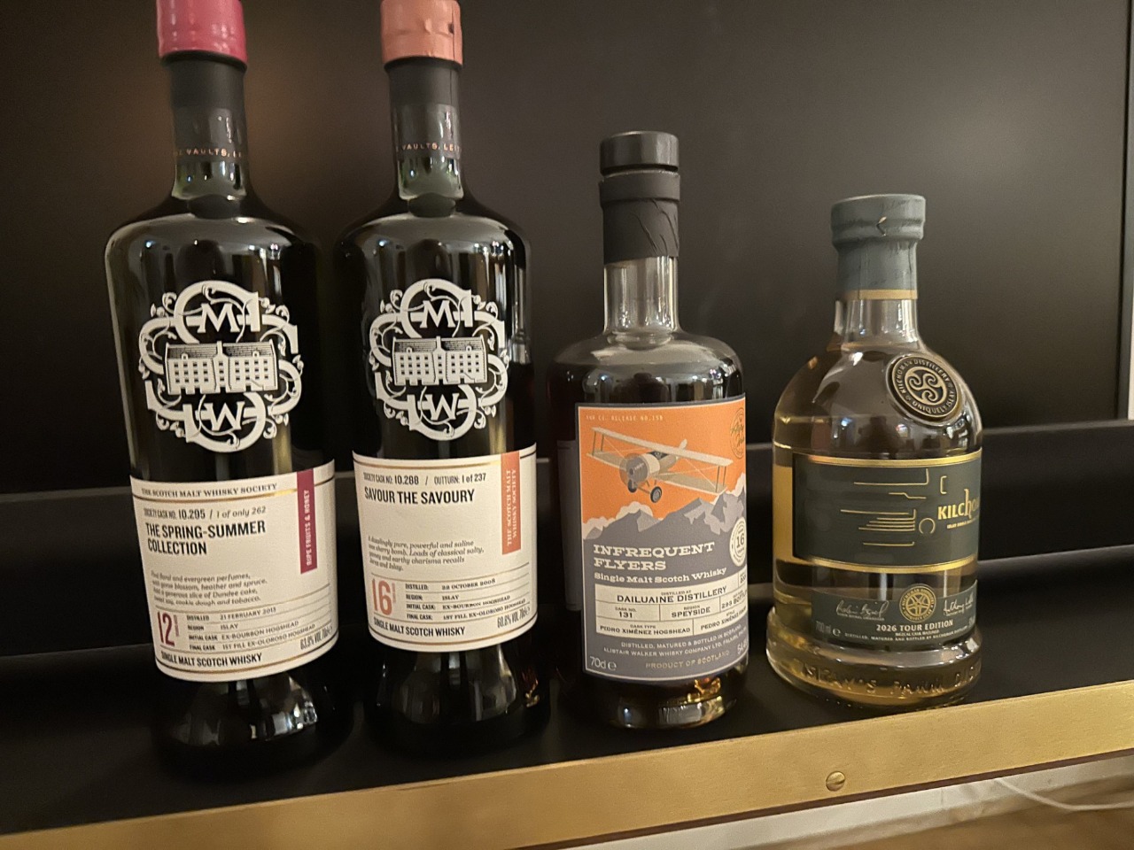 Kvällens whiskylina bestod av 3 sorter som Leif inhandlat på årets herresa till Skottland (till Ardnamurchan) plus en sigle malt från Sydafrika.